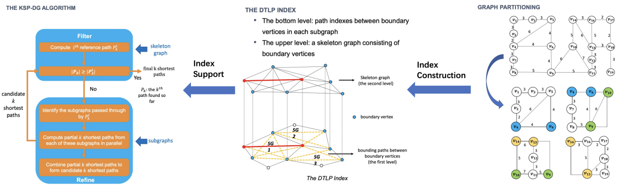 近日,計算機與控制工程學院于自強副教授與加拿大約克大學禹曉輝教授、多倫多大學NickKoudas教授、南京航空航天大學李博涵副教授等國內(nèi)外專家合作,在基于路網(wǎng)的復雜時空數(shù)據(jù)查詢問題方面取得兩項重要研究成果。第一項成果是針對路網(wǎng)環(huán)境下移動對象k近鄰查詢問題,創(chuàng)新性地提出一種移動對象密度感知的動態(tài)非平衡樹索引結(jié)構(gòu)。該索引結(jié)構(gòu)能夠根據(jù)變化的移動對象密度分布,自適應(yīng)調(diào)整不同路網(wǎng)區(qū)域的索引層次和索引粒度,使得查詢算法在不同區(qū)域均具備高效剪枝和精準搜索的能力。第二項成果針對動態(tài)圖的k條最短路線分布式查詢問題,提出了面向動態(tài)圖的邊界路線索引技術(shù)以及基于局部敏感哈希的大規(guī)模邊界路線壓縮技術(shù),使得索引路線免受動態(tài)圖中不斷變化的邊的權(quán)重影響,解決了動態(tài)圖中兩點之間最短距離的快速計算問題,從而提高面向動態(tài)圖的k條最短路線的查詢效率。