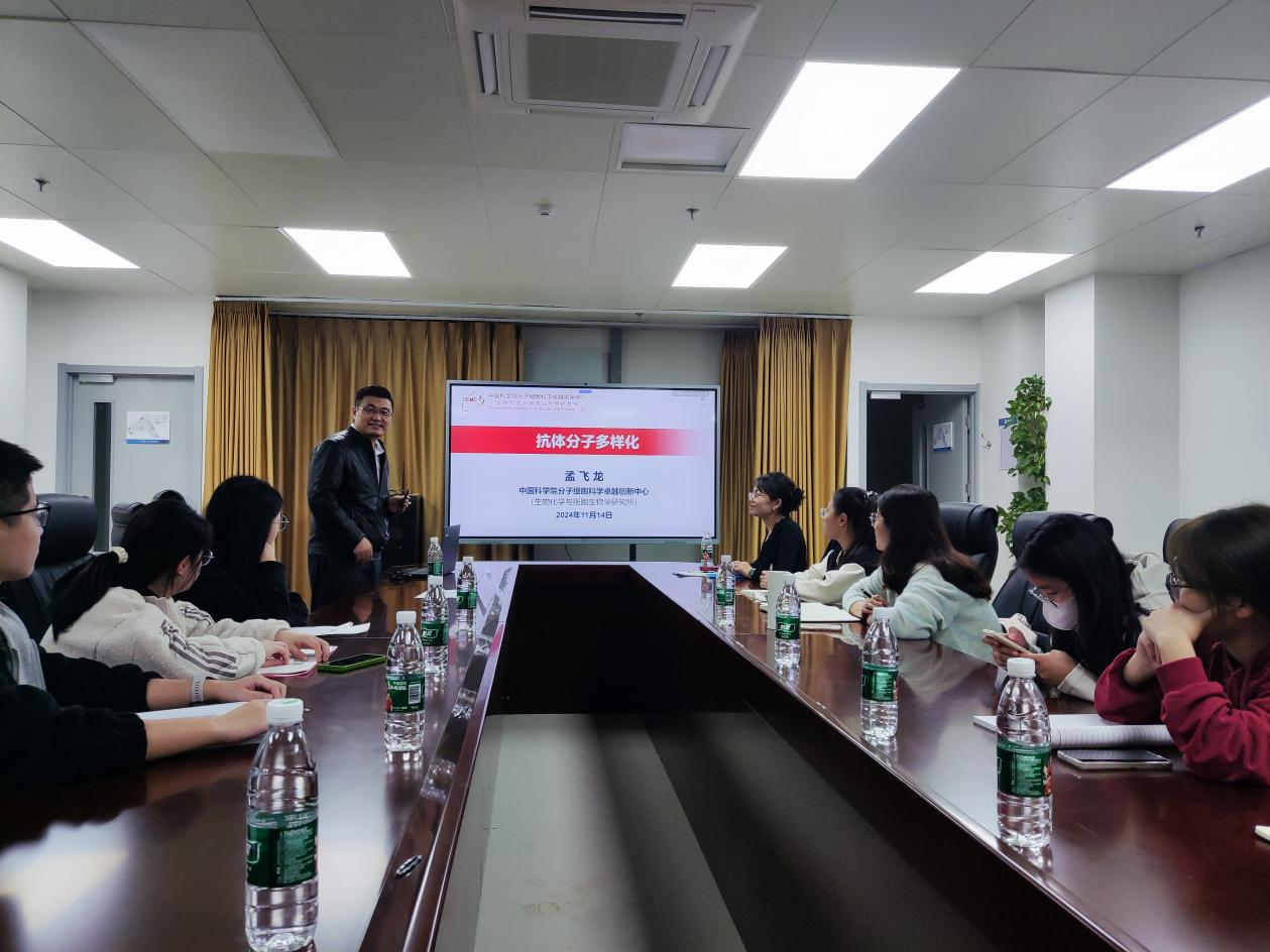 孟飛龍教授作題為“抗體分子進化中的突變、篩選與再設計”的學術報告。他從專業的角度對其課題組的抗體研究工作進行詳細介紹,從經典的生化方法出發,聯合高通量測序技術、分子動力學模擬和單分子生化方法等多種研究手段,在DNA尺度水平揭示了抗體基因CDR超突變背后的生化機制,發現進化中抗體基因CDR編碼區DNA序列富含柔性基序,更易捕獲AID進而導致了突變偏好的發生,解決了困擾這一領域40多年的科學難題,為下一代抗體基因人源化動物模型設計提供了底層理論。