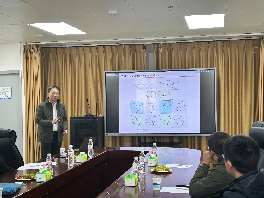 徐明華教授做了題為“手性烯烴配體促進的不對稱卡賓轉移反應”的學術報告。報告中總結了近年來開展的一系列不對稱反應方法學的研究,以手性硫化學、手性烯化學及手性硫烯化學為特色,在新型手性配體和催化劑的設計、一些結構重要的化合物的不對稱合成(如各種手性胺、手性氨基酸以及天然產物和藥物分子等)、生物活性分子和新藥研究等三方面取得了一些有較大影響和創新性的研究成果。徐明華教授還分享了其團隊在手性配體商品化方面的最新研究成果,其中包括設計發展了一類結構可調的具有簡單雙環結構的新型手性雙烯配體(已被世界最大的化學試劑公司Sigma-Aldrich商品化)。