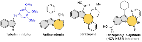 吲哚并氮雜中環(huán)化合物是天然產(chǎn)物和藥物分子中常見的結(jié)構(gòu)單元。例如,吲哚并氮雜中環(huán)Azepindole和Serazapine均具有良好的藥理學(xué)活性(Figure 1)。然而,由于中環(huán)化合物固有的不利熱力學(xué)(焓/熵)特性和環(huán)張力影響,構(gòu)建這類吲哚并氮雜中環(huán)化合物的方法仍相對匱乏。