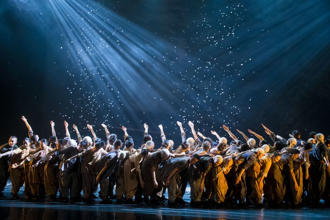 在舞蹈配樂上,《地雷戰》將具有海陽特色的民間小調、秧歌劇調以及具有音樂性的民間方言賦予民族搖滾樂的音樂風格和精神內涵,形成了融合電子、民族、電聲、大管弦樂在內的包容性音樂氣質。在舞美方面,該劇運用象征性的造型元素和隱喻性的藝術語匯,山、石、雷等舞臺道具與演員剛柔并濟的舞姿融為一體,讓現場觀眾有身臨其境之感。
