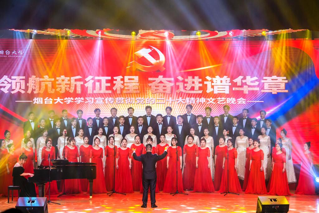 【本站訊】“嘉興南湖的紅船承載著人民的重托、民族的希望,越過激流險灘,穿過驚濤駭浪,如今成為了領航中國行穩致遠的巍巍巨輪……”為深入學習宣傳貫徹黨的二十大精神,11月18日晚,由煙臺大學黨委宣傳部主辦、音樂舞蹈學院承辦的“領航新征程 奮進譜華章”煙臺大學學習宣傳貫徹黨的二十大精神文藝晚會在弘毅廳精彩上演。學校領導張殿臣、宋中民、王強、畢可志、馮素玲出席晚會,機關各部門、各學院、教輔單位主要負責人,師生代表參加。