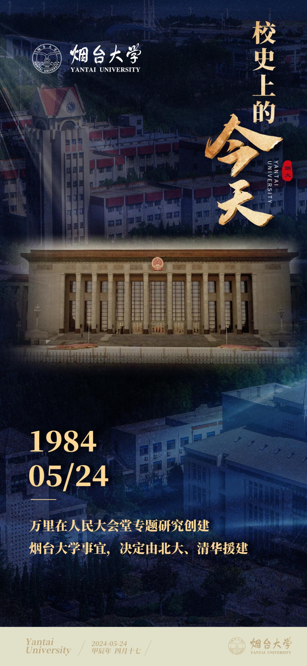【編者按】2024年是新中國成立75周年,也是煙臺大學建校40周年。40年來,誕生于改革開放時代大潮中的煙臺大學,植根齊魯文化沃土,傳承北大清華基因,弘揚改革開放精神,勇擔教育強國使命,書寫了一段段滋蘭樹蕙的育人故事,譜寫了一曲曲乘風破浪的奮進贊歌。為慶祝煙臺大學建校四十周年,新聞中心(融媒體中心)推出“校史上的今天”欄目,以時間為線索,擷取煙大建校發展史上具有代表意義的重大事件,重溫閃耀在歷史長河中的昔年今朝,追憶在鹽堿灘上白手起家、艱苦創業的崢嶸歲月,展現辦學歷程中取得的新發展成就,啟迪新時代煙大人在新征程中再創新輝煌。