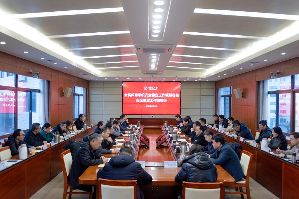 盧國強作總結講話,對全校上下抓好安全穩定工作落實提出具體要求。他指出,此次全省教育系統安全穩定視頻會議的召開意義重大、要求明確,各部門各單位要認真落實教育部和省委、省政府、省教育廳關于學校安全工作各項部署安排,不斷提高安全工作能力和水平,堅決防范各類安全事故發生,更好服務學校事業高質量發展。一要強化思想認識,牢固樹立紅線意識和底線思維。時刻繃緊安全這根弦,明確維護好校園安全穩定是我們不容有失的政治責任,以時時放心不下的責任感全力抓好學校安全工作。二要緊盯重點領域,切實推動各項安全舉措落實落地。做好意識形態和民族宗教工作,加強消防和實驗室安全管理,抓好傳染病防治和飲食衛生安全,推進交通秩序維護和校園周邊環境綜合整治,強化師生心理健康教育和服務保障,切實做到圖之于未萌、防患于未然。三是要狠抓責任落實,全力保障學校高水平大學建設。完善工作機制,認真履職盡責;做好值班值守,筑牢防線屏障;抓好工作落實,守牢安全底線,以最高的標準、最嚴的要求、最實的舉措,全力維護好校園安全穩定,為加快建成高水平大學、實現各項事業高質量發展作出新的貢獻。