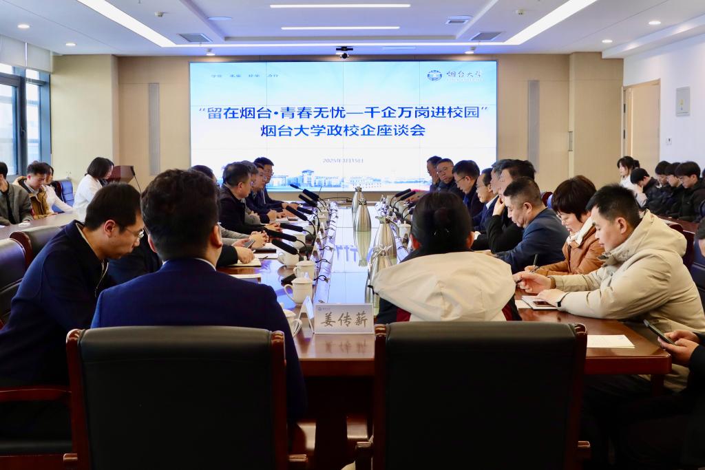 活動過程中,煙臺市公共就業和人才服務中心負責人、煙臺黃渤海新區人社局負責人、校領導、各學院及部門負責人分別在主校區和八角灣校區與東方化學、道恩集團、中集來福士、艾創機器人等10余家企業開展座談交流,進行企業和人才需求推介,就人才培養、學科建設、校企合作等方面深入探討并向重點企業代表頒發職業指導(就業創業)導師聘書。
