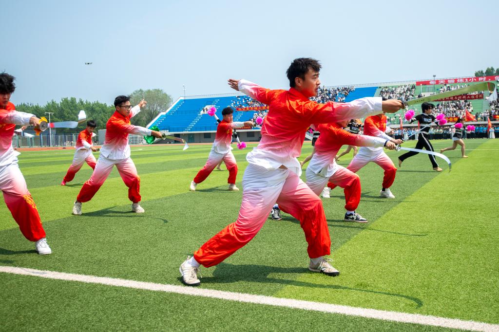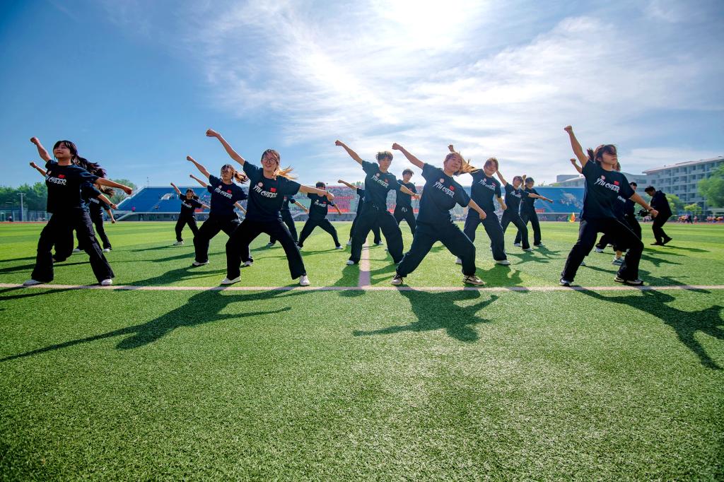 隨后,運動員代表宣誓,表示將嚴格遵守運動會比賽規則,以飽滿的熱情認真比賽,發揚頑強拼搏精神,勇創佳績;裁判員代表宣誓,表示將嚴格遵守競賽規則,認真履行裁判員職責,秉公裁判。團體操表演《未來可期》、街舞啦啦操表演《舞力全開》、啦啦操表演《我們一起夢飛揚》等依次亮相。湛藍的天空下,參演學子默契配合,動作整齊劃一。伴著青春旋律,同學們一起舞動“團體操”,將現場氣氛推向高潮;街舞啦啦操表演同學踏著動感節拍,時而展現颯爽英姿,時而舞出翩躚活力。