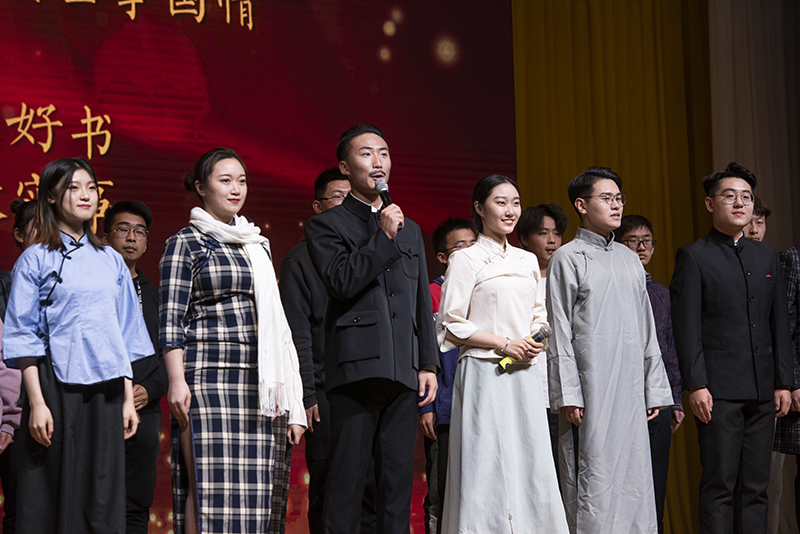 在紅色經典誦讀環節,學生代表為大家帶來了“紅色詩意”“紅色向往”“紅色深情”三個篇章的深情朗誦。學生情緒飽滿、誦讀扣人心弦,現場觀眾仿佛身臨其境,置身于崢嶸歲月。