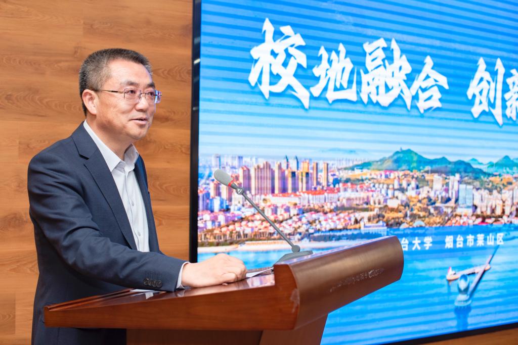 蔣海華在致辭中詳細介紹了萊山區發展現狀。他表示,萊山區產業集群效應顯著,新興業態如雨后春筍般繁榮興起,匯聚了眾多優質企業,其高新技術產業產值占比頗高,規上企業利潤率更是位居全市首位。蔣海華表示,煙臺大學是萊山區發展進程中不可或缺的重要伙伴,萊山區將全力支持學校建設,期待雙方在多領域進一步深化合作,共同為城市發展注入新活力。