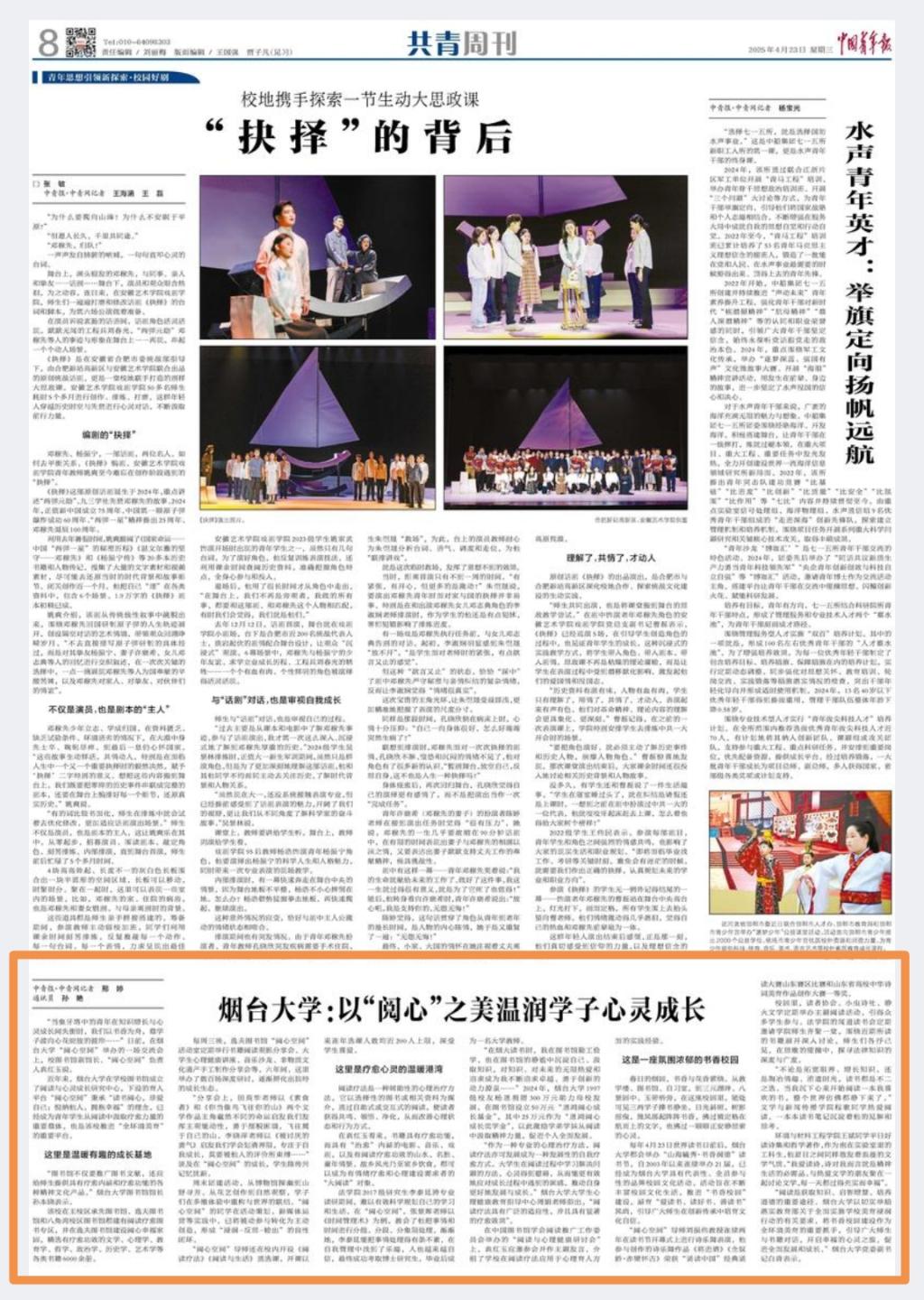 【本站訊】4月23日,世界讀書日之際,《中國青年報(bào)》08版以《煙臺大學(xué):以“閱心”之美溫潤學(xué)子心靈成長》為題,報(bào)道了煙臺大學(xué)將書香校園建設(shè)作為全環(huán)境美育重要抓手的經(jīng)驗(yàn)做法,現(xiàn)將原文轉(zhuǎn)載如下: